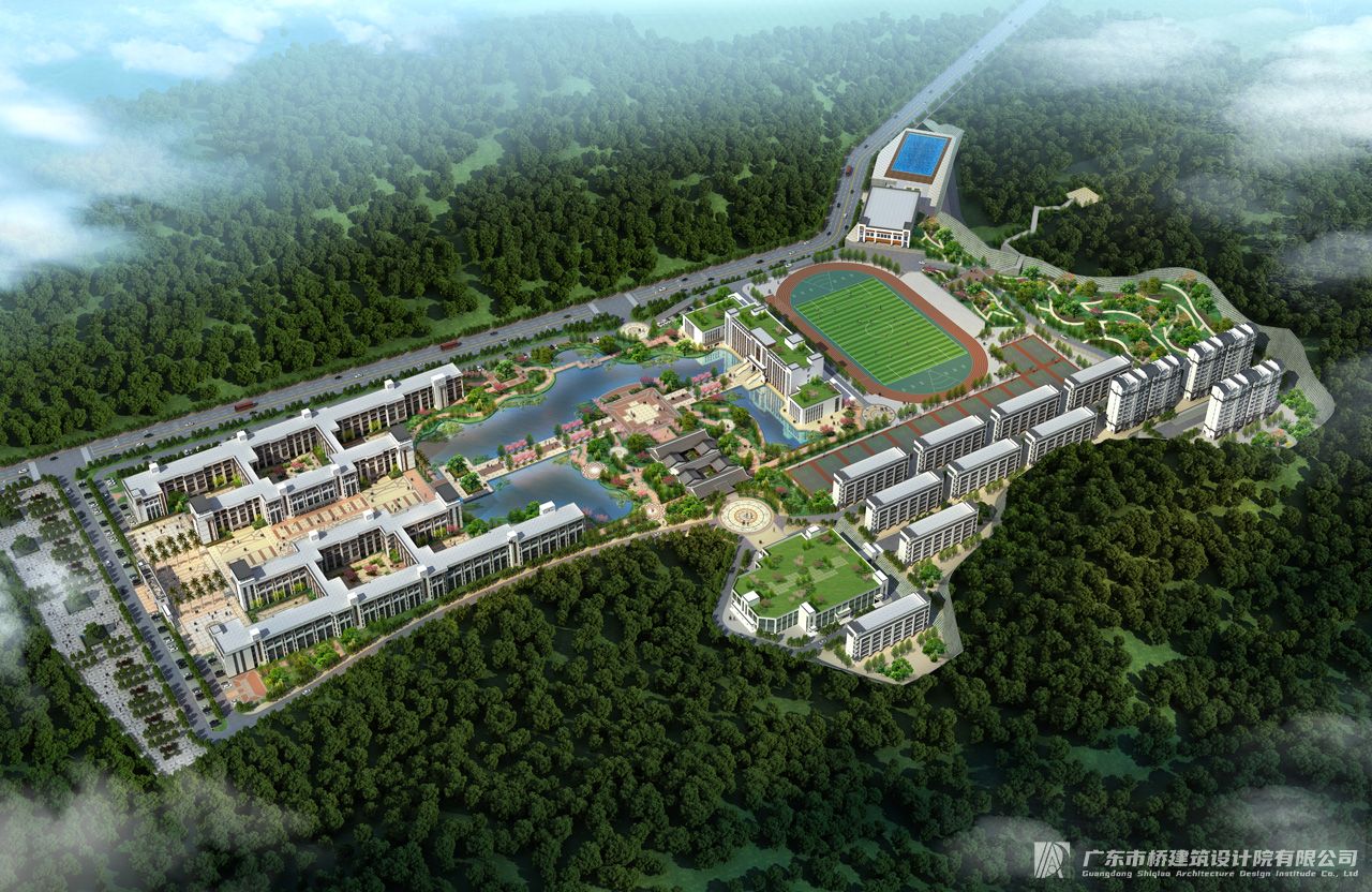 建筑基底面积:37016.1㎡,绿地面积:133688.1㎡。容积率为0.5,建筑密度14.5% ,绿地率52.5%。平均用地面积51.0㎡/人平均校舍面积26.8㎡/人。